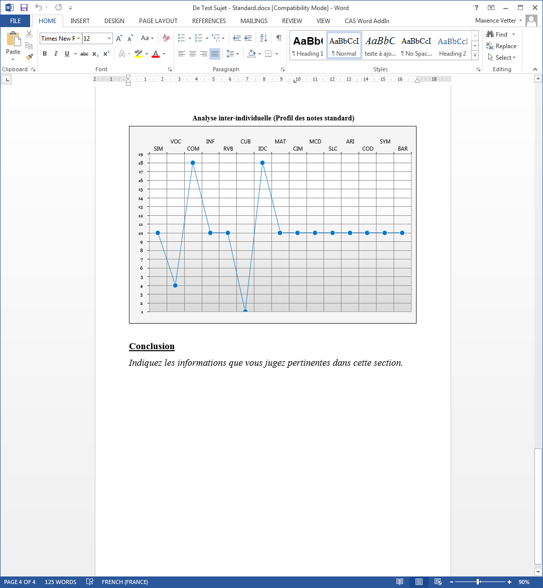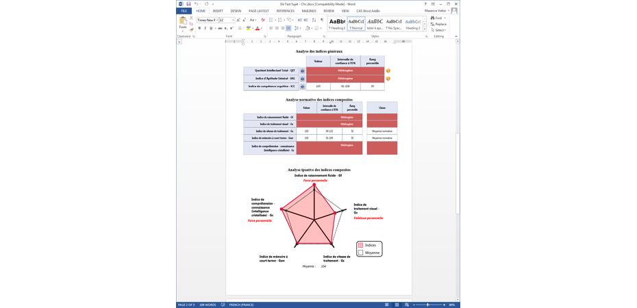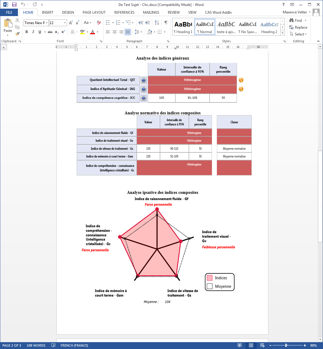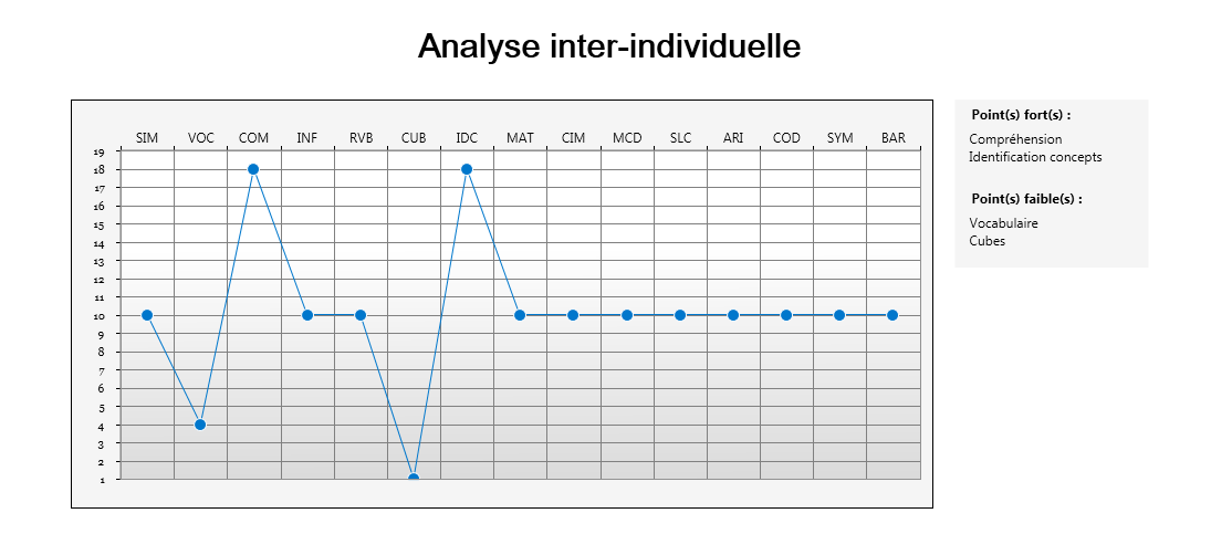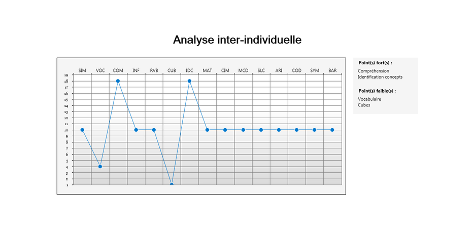 - Calcul de la moyenne des indices CHC et indication des points forts/faibles pour le sujet